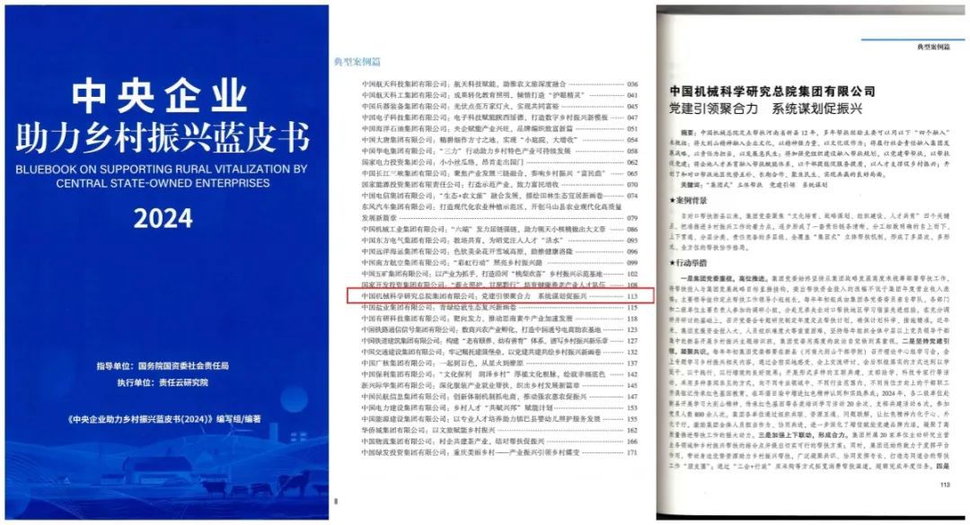 國務院國資委發(fā)布了《中央企業(yè)助力鄉(xiāng)村振興藍皮書(2024)》,集團申報的《黨建引領聚合力 系統(tǒng)謀劃促振興》案例成功入選了2024年中央企業(yè)助力鄉(xiāng)村振興典型案例。